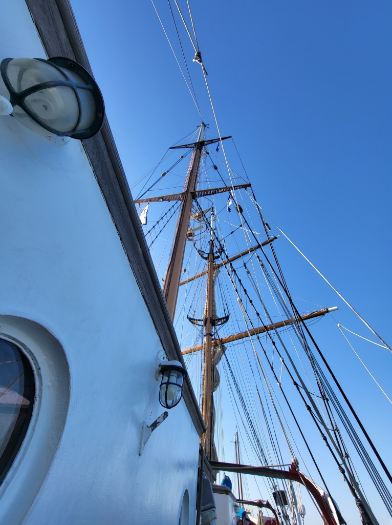 I made a point of being on deck when we exited the Gulf Stream. The night was calm, the seas flat to the point of reflecting the brightest stars. The change I could see was the sudden appearance of bio-luminescence in our wake. I’d been hoping for that all trip, but the Gulf Stream is too hot and too salty and too devoid of nutrients to support that kind of life. The coastal waters do, and the transition was quick. I pointed it out to everyone on deck at that point and requested time as lookout so I could hang over the bow and stare at the glowing froth as we plowed through it (I still checked the horizon for traffic, I have some standards). The propeller was making a deep glow in the ocean behind us, a solid six feet below the surface and looking like the Milky Way under the sea. Flying fish were leaping out of the water ahead of the ship, and making sparking trails where they left and re-entered the water. It was very very fine.