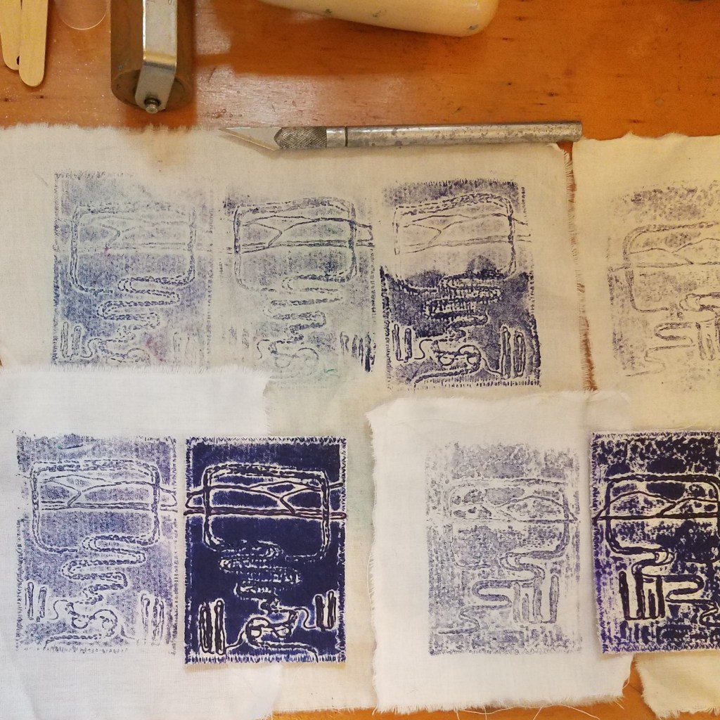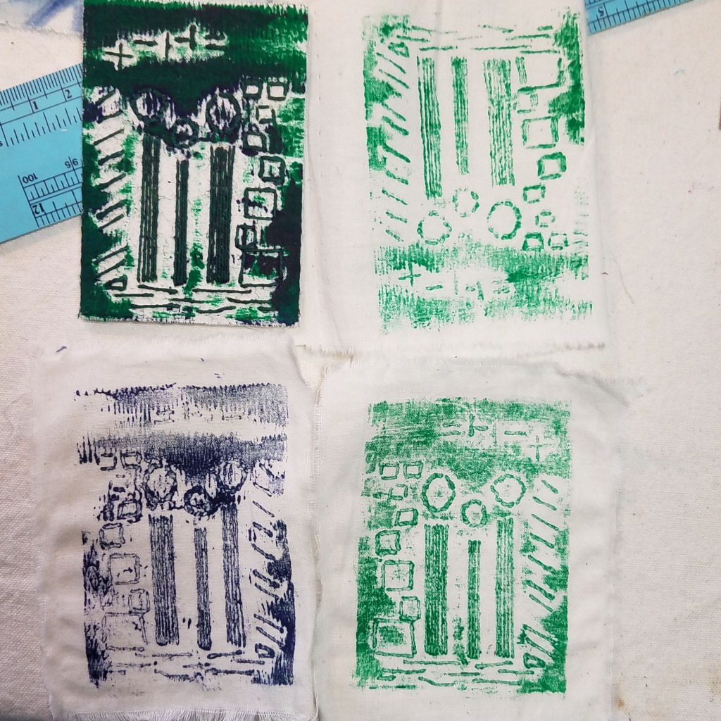 Bench notes are the notes on experiments that I take to remind myself of the steps I took, and what I was thinking, and what I thought the next steps would be. These excursions start when I see a piece of artwork or a scrap of something and my head spins with ideas about how I might translate that to fabric, and whether it would be interesting if I did. This batch started with the images below.